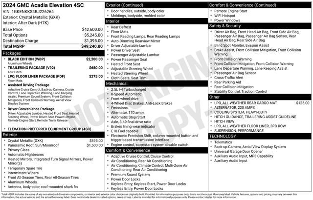 This 2024 GMC Acadia Elevation is equipped with an impressive array of features that elevate your driving experience. Highlights include: