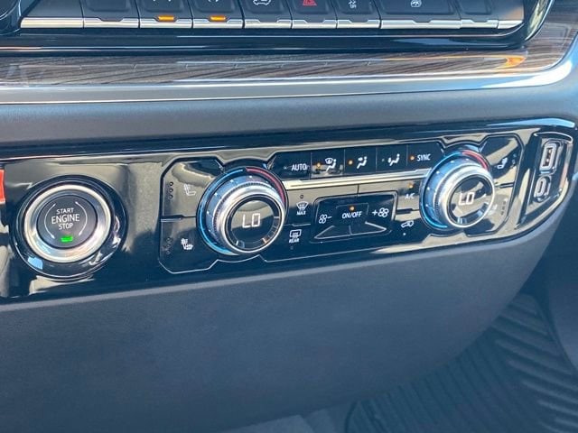 Navigation System, 10-Way Power Driver Seat Adjuster w/Lumbar, 120-Volt Bed Mounted Power Outlet, 120-Volt Interior Power Outlet, 2 Charge/Data USB Ports, 2 Type-C Charge-Only Rear USB Ports, 220 Amp Alternator, 3.42 Rear Axle Ratio, 4-Way Manual Passenger Seat Adjuster, 4-Wheel Disc Brakes, 6 Speakers, 6-Speaker Audio System Feature, ABS brakes, Air Conditioning, Alloy wheels, AM/FM radio: SiriusXM with 360L, Apple CarPlay/Android Auto, Auto High-beam Headlights, Auto-Locking Rear Differential, Automatic Emergency Braking, Automatic temperature control, Body Color Header w/Gloss Black Mesh Grille Bars, Brake assist, Buckle to Drive, Bumpers: body-color, Cloth Seat Trim, Color-Keyed Carpeting Floor Covering, Compass, Deep-Tinted Glass, Delay-off headlights, Driver door bin, Driver vanity mirror, Dual front impact airbags, Dual front side impact airbags, Electric Rear-Window Defogger, Electronic Stability Control, Following Distance Indicator, Forward Collision Alert, Front 40/20/40 Split-Bench Seat, Front anti-roll bar, Front Center Armrest w/Storage, Front dual zone A/C, Front fog lights, Front Frame-Mounted Black Recovery Hooks, Front Pedestrian Braking, Front reading lights, Front Rubberized-Vinyl Floor Mats, Front wheel independent suspension, Fully automatic headlights, Genuine wood dashboard insert, GMC Connected Access Capable, HD Rear Vision Camera, Heated door mirrors, Heated Driver & Front Outboard Passenger Seating, Heated front seats, Heated steering wheel, High Capacity Suspension Package, Hitch Guidance, Illuminated entry, IntelliBeam Automatic High Beam On/Off, Keyless Open & Start, Lane Keep Assist w/Lane Departure Warning, LED Cargo Area Lighting, Low tire pressure warning, Manual Tilt-Wheel & Telescoping Steering Column, Occupant sensing airbag, OnStar & GMC Connected Services Capable, Outside temperature display, Overhead airbag, Overhead console, Panic alarm, Passenger door bin, Passenger vanity mirror, Power Door Locks, Power door mirrors, Power driver seat, Power Front Windows w/Driver Express Up/Down, Power Front Windows w/Passenger Express Down, Power Rear Windows w/Express Down, Power steering, Power windows, Preferred Equipment Group 3VL, Premium audio system: GMC Infotainment System, Push Button Start, Radio data system, Radio: Premium GMC Infotainment Audio System, Rear reading lights, Rear Rubberized-Vinyl Floor Mats, Rear step bumper, Rear window defroster, Remote keyless entry, Remote Vehicle Starter System, Security system, SiriusXM w/360L, Speed control, Speed-sensing steering, Split folding rear seat, Standard Tailgate, Steering Wheel Audio Controls, Steering wheel mounted audio controls, Tachometer, Telescoping steering wheel, Theft Deterrent System (Unauthorized Entry), Tilt steering wheel, Traction control, Trailering Package, Trip computer, Variably intermittent wipers, Voltmeter, Wheels: 20 x 9 High Gloss Black Painted Aluminum, Wi-Fi Hotspot Capable, Wireless Apple CarPlay/Wireless Android Auto, Navigation System.