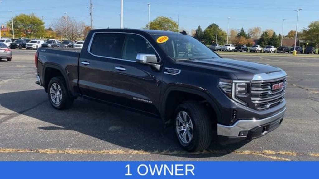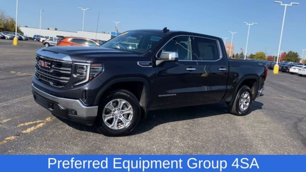 10-Way Power Passenger Seat Adjuster w/Lumbar, 120-Volt Interior Power Outlet, 170 Amp Alternator, 2 Charge/Data USB Ports, 2 Type-C Charge-Only Rear USB Ports, 6-Speaker Audio System Feature, ABS brakes, All-Weather Floor Liner (LPO), Alloy wheels, AM/FM radio: SiriusXM with 360L, Apple CarPlay/Android Auto, Auto-dimming door mirrors, Auto-Locking Rear Differential, Automatic Emergency Braking, Automatic temperature control, Auxiliary External Transmission Oil Cooler, Chrome Header & Chrome Grille Insert Bars, Color-Keyed Carpeting Floor Covering, Compass, Deep-Tinted Glass, Driver Memory, Dual front side impact airbags, Electric Rear-Window Defogger, Electronic Stability Control, Following Distance Indicator, Forward Collision Alert, Front & Rear Black Molded Splash Guards (LPO), Front fog lights, Front Frame-Mounted Black Recovery Hooks, Front Pedestrian Braking, Front Rain-Sensing Wipers, Fully automatic headlights, GMC Connected Access Capable, GMC Protection Package (LPO), HD Rear Vision Camera, Heated door mirrors, Heated Driver & Front Outboard Passenger Seating, Heated steering wheel, Hitch Guidance, Illuminated entry, IntelliBeam Automatic High Beam On/Off, Keyless Open & Start, Lane Keep Assist w/Lane Departure Warning, LED Cargo Area Lighting, Manual Tilt-Wheel & Telescoping Steering Column, Memory seat, Navigation System, OnStar & GMC Connected Services Capable, Outside temperature display, Perf Leather-Appointed Front Outboard Seat Trim, Perimeter Lighting, Power Door Locks, Power door mirrors, Power Front Passenger Windows w/Express Up/Down, Power Front Windows w/Driver Express Up/Down, Power Rear Windows w/Express Down, Preferred Equipment Group 4SA, Push Button Start, Radio: Premium GMC Infotainment Audio System, Rain sensing wipers, Rear Wheelhouse Liners, Rear window defroster, Remote keyless entry, Remote Vehicle Starter System, Security system, SiriusXM w/360L, Speed control, Speed-sensing steering, Split folding rear seat, Standard Suspension Package, Steering Wheel Audio Controls, Steering wheel mounted audio controls, Telescoping steering wheel, Theft Deterrent System (Unauthorized Entry), Traction control, Trailering Package, Voltmeter, Wi-Fi Hotspot Capable, Wireless Apple CarPlay/Wireless Android Auto, 10-Way Power Driver Seat Adjuster w/Lumbar, 120-Volt Bed Mounted Power Outlet, 20 Polished Aluminum Wheels, 3.23 Rear Axle Ratio, Air Conditioning, Auto High-beam Headlights, Auto-dimming Rear-View mirror, Brake assist, Buckle to Drive, Bumpers: chrome, Chrome Wheel To Wheel Assist Steps, Delay-off headlights, Deleted 3 Years of OnStar Remote Access, Dual front impact airbags, Front 40/20/40 Split-Bench Seat, Front anti-roll bar, Front dual zone A/C, Front wheel independent suspension, Low tire pressure warning, Occupant sensing airbag, Overhead airbag, Panic alarm, Power driver seat, Power passenger seat, Radio data system, Rear step bumper, SLT Convenience Package, SLT Premium Package, Variably intermittent wipers, Wheels: 18 x 8.5 6-Spoke Machined Aluminum, 1 OWNER, 10-Way Power Passenger Seat Adjuster w/Lumbar, 120-Volt Interior Power Outlet, 170 Amp Alternator, 2 Charge/Data USB Ports, 2 Type-C