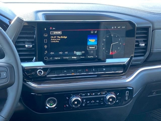 Navigation System, 10-Way Power Driver Seat Adjuster w/Lumbar, 120-Volt Bed Mounted Power Outlet, 120-Volt Interior Power Outlet, 2 Charge/Data USB Ports, 2 Type-C Charge-Only Rear USB Ports, 220 Amp Alternator, 3.42 Rear Axle Ratio, 4-Way Manual Passenger Seat Adjuster, 4-Wheel Disc Brakes, 6 Speakers, 6-Speaker Audio System Feature, ABS brakes, Air Conditioning, Alloy wheels, AM/FM radio: SiriusXM with 360L, Apple CarPlay/Android Auto, Auto High-beam Headlights, Auto-Locking Rear Differential, Automatic Emergency Braking, Automatic temperature control, Body Color Header w/Gloss Black Mesh Grille Bars, Brake assist, Buckle to Drive, Bumpers: body-color, Cloth Seat Trim, Color-Keyed Carpeting Floor Covering, Compass, Deep-Tinted Glass, Delay-off headlights, Driver door bin, Driver vanity mirror, Dual front impact airbags, Dual front side impact airbags, Electric Rear-Window Defogger, Electronic Stability Control, Following Distance Indicator, Forward Collision Alert, Front 40/20/40 Split-Bench Seat, Front anti-roll bar, Front Center Armrest w/Storage, Front dual zone A/C, Front fog lights, Front Frame-Mounted Black Recovery Hooks, Front Pedestrian Braking, Front reading lights, Front Rubberized-Vinyl Floor Mats, Front wheel independent suspension, Fully automatic headlights, Genuine wood dashboard insert, GMC Connected Access Capable, HD Rear Vision Camera, Heated door mirrors, Heated Driver & Front Outboard Passenger Seating, Heated front seats, Heated steering wheel, High Capacity Suspension Package, Hitch Guidance, Illuminated entry, IntelliBeam Automatic High Beam On/Off, Keyless Open & Start, Lane Keep Assist w/Lane Departure Warning, LED Cargo Area Lighting, Low tire pressure warning, Manual Tilt-Wheel & Telescoping Steering Column, Occupant sensing airbag, OnStar & GMC Connected Services Capable, Outside temperature display, Overhead airbag, Overhead console, Panic alarm, Passenger door bin, Passenger vanity mirror, Power Door Locks, Power door mirrors, Power driver seat, Power Front Windows w/Driver Express Up/Down, Power Front Windows w/Passenger Express Down, Power Rear Windows w/Express Down, Power steering, Power windows, Preferred Equipment Group 3VL, Premium audio system: GMC Infotainment System, Push Button Start, Radio data system, Radio: Premium GMC Infotainment Audio System, Rear reading lights, Rear Rubberized-Vinyl Floor Mats, Rear step bumper, Rear window defroster, Remote keyless entry, Remote Vehicle Starter System, Security system, SiriusXM w/360L, Speed control, Speed-sensing steering, Split folding rear seat, Standard Tailgate, Steering Wheel Audio Controls, Steering wheel mounted audio controls, Tachometer, Telescoping steering wheel, Theft Deterrent System (Unauthorized Entry), Tilt steering wheel, Traction control, Trailering Package, Trip computer, Variably intermittent wipers, Voltmeter, Wheels: 20 x 9 High Gloss Black Painted Aluminum, Wi-Fi Hotspot Capable, Wireless Apple CarPlay/Wireless Android Auto, Navigation System.