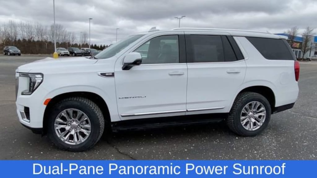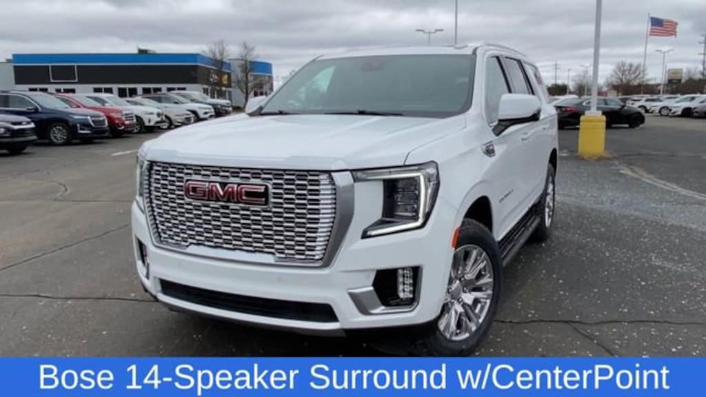 Bose 14-Speaker Surround w/CenterPoint, Dual-Pane Panoramic Power Sunroof, Navigation System, Power Liftgate, 12-Way Power Seat Adjusters, 14 Speakers, 15 Diagonal Multi-Color Head-Up Display, 2 Presets For Outside Rearview Mirrors, 3.23 Rear Axle Ratio, 3rd Row 60/40 Power-Folding Split-Bench Seat, 3rd row seats: split-bench, 4-Wheel Disc Brakes, ABS brakes, Adaptive Cruise Control, Adaptive suspension, Air Conditioning, Alloy wheels, AM/FM radio: SiriusXM with 360L, AM/FM Stereo, Apple CarPlay/Android Auto, Auto High-beam Headlights, Auto-dimming door mirrors, Auto-dimming Rear-View mirror, Auto-leveling suspension, Automatic Emergency Braking, Automatic temperature control, Bodyside moldings, Brake assist, Bright Front & Rear Door Sill Plates, Bumpers: body-color, Chrome Door Handles w/Body-Color Strip, Compass, Delay-off headlights, Deleted 3 Years of OnStar Premium Plan, Driver door bin, Driver vanity mirror, Dual Exhaust System, Dual front impact airbags, Dual front side impact airbags, Electronic Stability Control, Emergency communication system: OnStar and GMC connected services capable, Enhanced Automatic Emergency Braking, Floor Console, Following Distance Indicator, Forward Collision Alert, Four wheel independent suspension, Front & Rear Park Assist, Front anti-roll bar, Front Bucket Seats, Front Center Armrest, Front dual zone A/C, Front fog lights, Front Pedestrian Braking, Front reading lights, Fully automatic headlights, Galvano Bodyside Moldings, Garage door transmitter, Hands-Free Power Programmable Rear Liftgate, HD Surround Vision, Heads-Up Display, Heated 2nd Row Outboard Position Seats, Heated door mirrors, Heated Driver & Front Passenger Seats, Heated front seats, Heated rear seats, Heated Steering Wheel, Heated steering wheel, Hill Descent Control, Illuminated entry, Inside Rear-View Auto-Dimming Mirror, IntelliBeam Automatic High Beam On/Off, Lane Change Alert w/Side Blind Zone Alert, Lane Keep Assist w/Lane Departure Warning, Low tire pressure warning, Magnetic Ride Control Suspension, Memory seat, Occupant sensing airbag, Outside Heated Power-Adjustable Mirrors, Outside temperature display, Overhead airbag, Overhead console, Panic alarm, Passenger door bin, Passenger vanity mirror, Perforated Heated & Ventilated Dr & Frt Pass Seats, Perforated Leather Seating Surfaces, Power door mirrors, Power driver seat, Power passenger seat, Power Release 2nd Row Bucket Seats, Power steering, Power Tilt & Telescopic Steering Column, Power windows, Preferred Equipment Group 5SA, Rain sensing wipers, Rear air conditioning, Rear anti-roll bar, Rear Cross Traffic Alert, Rear Pedestrian Alert, Rear reading lights, Rear window defroster, Rear window wiper, Remote keyless entry, Roof rack: rails only, Safety Alert Seat, Security system, SiriusXM w/360L, Speed control, Speed-sensing steering, Split folding rear seat, Spoiler, Steering wheel memory, Steering wheel mounted audio controls, Tachometer, Telescoping steering wheel, Tilt steering wheel, Traction control, Trip computer, Turn signal indicator mirrors, Universal Home Remote, Variably intermittent wipers, Ventilated front seats, Voltmeter, Wheels: 20 x 9 6-Spoke Polished Aluminum, Wireless Charging, Bos