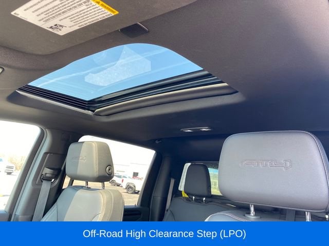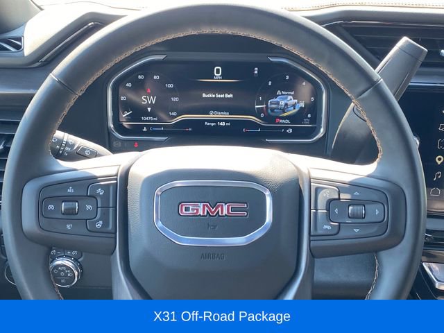 AT4 Preferred Package, AT4 Premium Plus Package, Bose Premium 7-Speaker Sound System, Gooseneck/5th Wheel Prep Package, Hill Descent Control, LED Smoked Amber Roof Marker Lamps, Navigation System, Off-Road High Clearance Step (LPO), Power Sliding Rear Window w/Defogger, Power Sunroof, Technology Package, Universal Home Remote, X31 Off-Road Package, 10-Way Power Driver Seat Adjuster w/Lumbar, 10-Way Power Passenger Seat Adjuster w/Lumbar, 120-Volt Bed Mounted Power Outlet, 120-Volt Instrument Panel Power Outlet, 1st & 2nd Rows All-Weather Floor Liners (LPO), 2 Charge-Only Rear USB Ports, 2 Charge/Data USB Ports Inside Center Console, 2 USB Ports, 2-Speed Active Transfer Case, 3 Years SiriusXM, 3.73 Rear Axle Ratio, 4-Wheel Disc Brakes, 7 Speakers, ABS brakes, Air Conditioning, Alloy wheels, AM/FM radio: SiriusXM with 360L, Apple CarPlay/Android Auto, Auto High-beam Headlights, Auto-dimming door mirrors, Auto-dimming Rear-View mirror, Automatic Emergency Braking, Automatic temperature control, Bed View Camera w/2 Trailer Camera Provisions, Brake assist, Buckle to Drive, Bumpers: body-color, Compass, Deep-Tinted Glass, Delay-off headlights, Driver door bin, Driver Memory, Driver vanity mirror, Dual front impact airbags, Dual front side impact airbags, Electric Rear-Window Defogger, Electronic Stability Control, Emergency communication system: OnStar, Floor-Mounted Center Console, Following Distance Indicator, Forward Collision Alert, Front anti-roll bar, Front Bucket Seats, Front Center Armrest, Front dual zone A/C, Front fog lights, Front Pedestrian Braking, Front Prem Floor Liners w/Removable Carpet Insert, Front Rain-Sensing Wipers, Front reading lights, Front wheel independent suspension, Fully automatic headlights, Gloss Black Header Grille & Grille Insert Bars, HD Surround Vision, Heated 2nd Row Outboard Seats, Heated door mirrors, Heated Driver & Front Outboard Passenger Seats, Heated front seats, Heated rear seats, Heated steering wheel, Heavy-Duty 80 Amp Battery, Hitch Guidance w/Hitch View, Illuminated entry, In-Vehicle Trailering System App, Inside Rearview Auto-Dimming Rear Camera Mirror, IntelliBeam Automatic High Beam On/Off, Keyless Open & Start, Lane Departure Warning System, LED Cargo Area Lighting, Low tire pressure warning, Manual Tilt-Wheel/Telescoping Steering Column, Memory seat, Multicolor 15 Diagonal Head-Up Display, Occupant sensing airbag, Off-Road Suspension, OnStar Services Capable, Outside temperature display, Overhead airbag, Overhead console, Panic alarm, Passenger door bin, Passenger vanity mirror, Perforated Leather-Appointed Front Seat Trim, Pickup Box, Power door mirrors, Power driver seat, Power Front Passenger Windows w/Express Up/Down, Power passenger seat, Power steering, Power windows, Preferred Equipment Group 4SB, Push Button Start, Radio: AM/FM w/Premium GMC Infotainment System, Rain sensing wipers, Rear Cross Traffic Alert, Rear Prem Floor Liners w/Removable Carpet Insert, Rear reading lights, Rear seat center armrest, Rear step bumper, Rear Wheelhouse Liners, Rear window defroster, Remote keyless entry, Remote Vehicle Starter System, Safety Alert Seat, Security system, SiriusXM w/