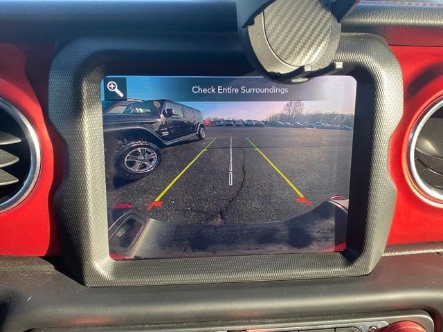 Advanced Brake Assist, Advanced Safety Group, Blind Spot & Cross Path Detection, Cold Weather Group, Full Speed Forward Collision Warning Plus, Heated Front Seats, Heated Steering Wheel, ParkSense Rear Park Assist System, Safety Group, 1-Year SiriusXM Guardian Trial, 240 Amp Alternator, 4-Wheel Disc Brakes, 4.10 Rear Axle Ratio, 5-Year SiriusXM Traffic Service, 5-Year SiriusXM Travel Link Service, 8 Speakers, 8.4 Radio & Premium Audio Group, 97 mph Maximum Speed Calibration, ABS brakes, Air Conditioning, All-Weather Slush Mats, Alloy wheels, Alpine Premium Audio System, AM/FM radio: SiriusXM, Apple CarPlay/Android Auto, Auto-Dimming Rear-View Mirror, Automatic temperature control, Black 3-Piece Hard Top, Bluetooth Wireless Speaker, Brake assist, Cargo Group w/Trail Rail System, Class IV Hitch Receiver, Compass, Daytime Running Lamps LED Accents, Delay-off headlights, Driver door bin, Driver vanity mirror, Dual front impact airbags, Dual front side impact airbags, Dual Top Group, Electronic Stability Control, Emergency/Assistance Call, Exterior 115V AC Outlet, For Details, Visit DriveUconnect.com, Freedom Panel Storage Bag, Front anti-roll bar, Front Bucket Seats, Front Center Armrest w/Storage, Front dual zone A/C, Front fog lights, Front LED Fog Lamps, Front reading lights, Fully automatic headlights, Garage door transmitter, HD Radio, Heated door mirrors, Heavy-Duty Engine Cooling, Illuminated entry, Integrated roll-over protection, Leather steering wheel, LED Lighting Group, LED Park Turn Lamps, LED Reflector Headlamps, LED Taillamps, Lockable Rear Underseat Storage, Low tire pressure warning, No Soft Top, Occupant sensing airbag, Outside temperature display, Panic alarm, ParkView Rear Back-Up Camera, Passenger door bin, Passenger vanity mirror, Performance Suspension, Power door mirrors, Power steering, Power windows, Premium Cloth Low-Back Bucket Seats, Premium Sunrider Black Soft Top, Quick Order Package 24R, Radio data system, Radio: Uconnect 4 w/7 Display, Radio: Uconnect 4C Nav w/8.4 Display, Rear anti-roll bar, Rear reading lights, Rear Sliding Window, Rear Window Defroster, Remote keyless entry, Remote Proximity Keyless Entry, Remote Start System, Roll-Up Tonneau Cover, Security system, SiriusXM Traffic Plus, SiriusXM Travel Link, Speed control, Split folding rear seat, Steering wheel mounted audio controls, Tachometer, Telescoping steering wheel, Tilt steering wheel, Traction control, Trailer Hitch Zoom, Trailer Tow Package, Trip computer, Variably intermittent wipers, Voltmeter, Wheels: 17 x 7.5 Granite Crystal Aluminum, Wheels: 17 x 7.5 Polished Black Aluminum, Advanced Brake Assist, Advanced Safety Group, Blind Spot & Cross Path Detection, Cold Weather Group, Full Speed Forward Collision Warning Plus, Heated Front Seats, Heated Steering Wheel, ParkSense Rear Park Assist System, Safety Group.