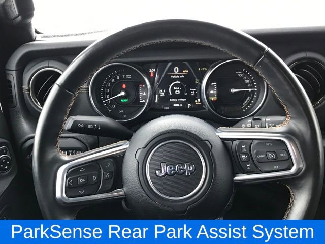 Safety is paramount in this Wrangler, with advanced features like Adaptive Cruise Control, Full Speed Forward Collision Warning Plus, Blind Spot & Cross Path Detection, and ParkSense Rear Park Assist System. Stay connected with the Uconnect 4C Nav system featuring an 8.4 display, Apple CarPlay, and Android Auto integration.