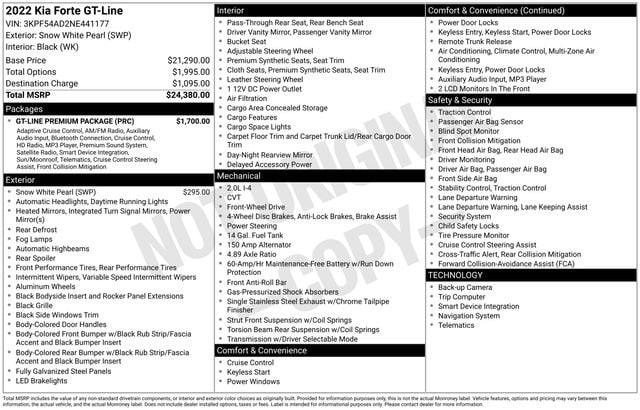 Electronic Parking Brake (EPB) w/Auto Hold, Exterior Parking Camera Rear, Forward Collision Avoidance-Assist - Cyclist, GT-Line Premium Package, Highway Driving Assist (HDA), Navigation System, Navigation-Based Smart Cruise Control (NSCC), Overhead LED Front & Rear Reading Lamps, Power Sunroof, Radio: AM/FM/MP3 harman/kardon Premium Audio System, Smart Cruise Control, Wireless Charging, 4-Wheel Disc Brakes, 6 Speakers, ABS brakes, Air Conditioning, Alloy wheels, AM/FM radio: SiriusXM, Apple CarPlay & Android Auto, Auto High-beam Headlights, Automatic temperature control, Brake assist, Bumpers: body-color, Cloth & Leatherette Seat Trim, Delay-off headlights, Driver door bin, Driver vanity mirror, Dual front impact airbags, Dual front side impact airbags, Electronic Stability Control, Emergency communication system: UVO eServices, Front anti-roll bar, Front Bucket Seats, Front Center Armrest, Front dual zone A/C, Front fog lights, Front reading lights, Front Sport Seats, Front wheel independent suspension, Fully automatic headlights, Heated door mirrors, Illuminated entry, Leather Shift Knob, Leather steering wheel, Low tire pressure warning, Occupant sensing airbag, Outside temperature display, Overhead airbag, Overhead console, Panic alarm, Passenger door bin, Passenger vanity mirror, Power door mirrors, Power steering, Power windows, Radio data system, Radio: UVO Link Audio System, Rear seat center armrest, Rear window defroster, Remote keyless entry, Security system, Speed control, Split folding rear seat, Spoiler, Sport steering wheel, Steering wheel mounted audio controls, Tachometer, Telescoping steering wheel, Tilt steering wheel, Traction control, Trip computer, Turn signal indicator mirrors, Variably intermittent wipers, Wheels: 17 Graphite Finish Alloy, Electronic Parking Brake (EPB) w/Auto Hold, Exterior Parking Camera Rear, Forward Collision Avoidance-Assist - Cyclist, GT-Line Premium Package, Highway Driving Assist (HDA), Navigation System, Navigation-Based Smart Cruise Control (NSCC), Overhead LED Front & Rear Reading Lamps, Power Sunroof, Radio: AM/FM/MP3 harman/kardon Premium Audio System, Smart Cruise Control, Wireless Charging.
