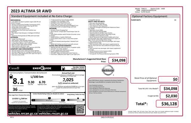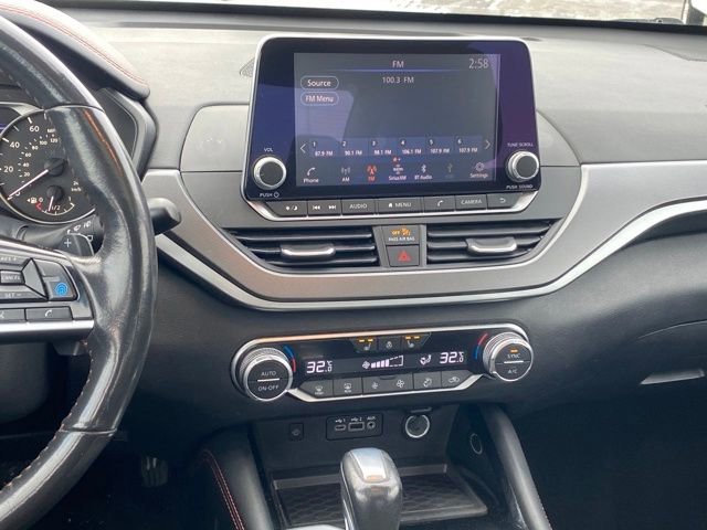 AM/FM radio: SiriusXM, NissanConnect featuring Apple CarPlay and Android Auto, Rear Parking Sensors, Single Panel Moonroof, Speed control, Telescoping steering wheel, 4-Wheel Disc Brakes, 6 Speakers, ABS brakes, Air Conditioning, Alloy wheels, Auto High-beam Headlights, Blind Spot Warning, Brake assist, Bumpers: body-color, Delay-off headlights, Driver door bin, Driver vanity mirror, Dual front impact airbags, Dual front side impact airbags, Electronic Stability Control, Four wheel independent suspension, Front anti-roll bar, Front Bucket Seats, Front Center Armrest, Front reading lights, Front Sport Bucket Seats, Fully automatic headlights, Illuminated entry, Knee airbag, Leather Shift Knob, Low tire pressure warning, Occupant sensing airbag, Outside temperature display, Overhead airbag, Overhead console, Panic alarm, Passenger door bin, Passenger vanity mirror, Power door mirrors, Power driver seat, Power steering, Power windows, Radio data system, Radio: AM/FM Audio System, Rear anti-roll bar, Rear reading lights, Rear seat center armrest, Rear side impact airbag, Rear window defroster, Remote keyless entry, Security system, Speed-sensing steering, Speed-Sensitive Wipers, Split folding rear seat, Sport Seat Trim, Steering wheel mounted audio controls, Tachometer, Tilt steering wheel, Traction control, Trip computer, Variably intermittent wipers, Wheels: 19 Sport Alloy, AM/FM radio: SiriusXM, NissanConnect featuring Apple CarPlay and Android Auto, Rear Parking Sensors, Single Panel Moonroof, Speed control, Telescoping steering wheel.