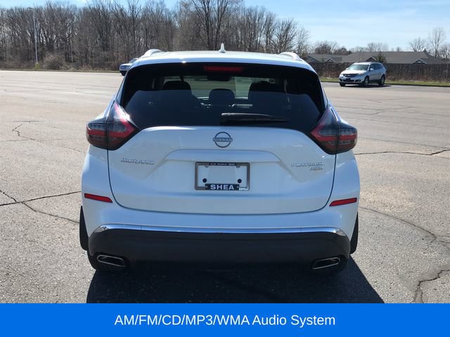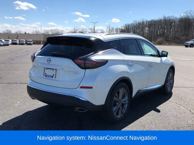AM/FM/CD/MP3/WMA Audio System, Exterior Parking Camera Rear, Navigation system: NissanConnect Navigation, NissanConnect featuring Apple CarPlay and Android Auto, NissanConnect Services Powered By SiriusXM, Power Liftgate, Speed control, 11 Speakers, 4-Wheel Disc Brakes, 4.667 Axle Ratio, ABS brakes, Air Conditioning, Alloy wheels, AM/FM radio: SiriusXM, Auto High-beam Headlights, Auto tilt-away steering wheel, Auto-dimming Rear-View mirror, Automatic temperature control, Blind Spot Warning, Brake assist, Bumpers: body-color, CD player, Child-Seat-Sensing Airbag, Delay-off headlights, Driver door bin, Driver vanity mirror, Dual front impact airbags, Dual front side impact airbags, Electronic Stability Control, Emergency communication system: NissanConnect Services (first 6 months included), Four wheel independent suspension, Front anti-roll bar, Front Bucket Seats, Front Center Armrest, Front dual zone A/C, Front fog lights, Front reading lights, Fully automatic headlights, Garage door transmitter: HomeLink, Heated & Ventilated Front Bucket Seats, Heated door mirrors, Heated front seats, Heated rear seats, Heated steering wheel, Illuminated entry, Knee airbag, Low tire pressure warning, Memory seat, Occupant sensing airbag, Outside temperature display, Overhead airbag, Overhead console, Panic alarm, Passenger door bin, Passenger vanity mirror, Power door mirrors, Power driver seat, Power moonroof, Power passenger seat, Power steering, Power windows, Premium audio system: Bose, Radio data system, Rear anti-roll bar, Rear reading lights, Rear seat center armrest, Rear side impact airbag, Rear window defroster, Rear window wiper, Remote keyless entry, Security system, Semi-Aniline Leather-Appointed Seat Trim, Speed-sensing steering, Speed-Sensitive Wipers, Split folding rear seat, Spoiler, Steering wheel memory, Steering wheel mounted audio controls, Tachometer, Telescoping steering wheel, Tilt steering wheel, Traction control, Trip computer, Turn signal indicator mirrors, Variably intermittent wipers, Ventilated front seats, Wheels: 20 Unique Dark Hyper Silver, ALL WHEEL DRIVE, AM/FM/CD/MP3/WMA Audio System, Exterior Parking Camera Rear, Navigation system: NissanConnect Navigation, NissanConnect featuring Apple CarPlay and Android Auto, NissanConnect Services Powered By SiriusXM, Power Liftgate, Speed control.