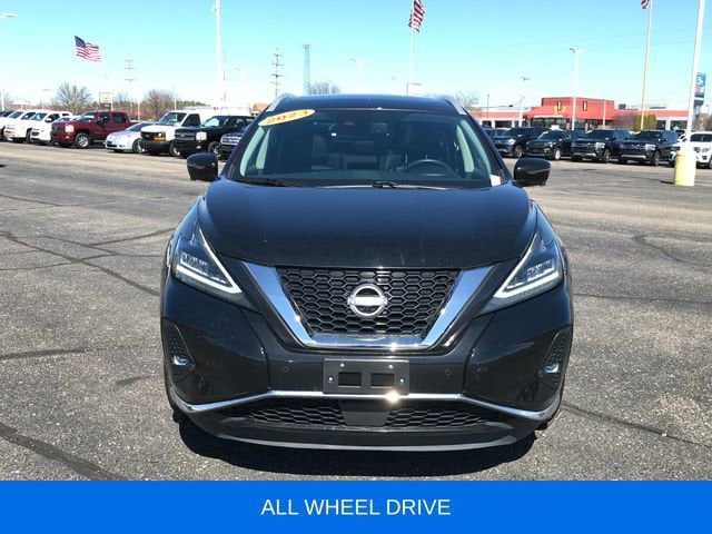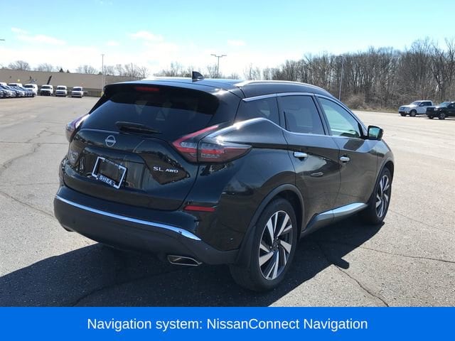 AM/FM/CD/MP3/WMA Audio System, Blind Spot Warning, Dual-Panel Moonroof, Exterior Parking Camera Rear, Heated Front Bucket Seats, Leather-Appointed Seat Trim, Navigation system: NissanConnect Navigation, NissanConnect featuring Apple CarPlay and Android Auto, Power Liftgate, Roof Rail Delete, SL Moonroof Package, Speed control, Wheels: 20 Machined Aluminum-Alloy, 11 Speakers, 4-Wheel Disc Brakes, 4.667 Axle Ratio, ABS brakes, Air Conditioning, Alloy wheels, AM/FM radio: SiriusXM, Auto High-beam Headlights, Auto-dimming Rear-View mirror, Automatic temperature control, Brake assist, Bumpers: body-color, CD player, Child-Seat-Sensing Airbag, Delay-off headlights, Driver door bin, Driver vanity mirror, Dual front impact airbags, Dual front side impact airbags, Electronic Stability Control, Four wheel independent suspension, Front anti-roll bar, Front Bucket Seats, Front Center Armrest, Front dual zone A/C, Front fog lights, Front reading lights, Fully automatic headlights, Garage door transmitter: HomeLink, Heated door mirrors, Heated rear seats, Heated steering wheel, Illuminated entry, Knee airbag, Low tire pressure warning, Memory seat, Occupant sensing airbag, Outside temperature display, Overhead airbag, Overhead console, Panic alarm, Passenger door bin, Passenger vanity mirror, Power door mirrors, Power driver seat, Power passenger seat, Power steering, Power windows, Radio data system, Rear anti-roll bar, Rear reading lights, Rear seat center armrest, Rear side impact airbag, Rear window defroster, Rear window wiper, Remote keyless entry, Security system, Speed-sensing steering, Speed-Sensitive Wipers, Split folding rear seat, Spoiler, Steering wheel mounted audio controls, Tachometer, Telescoping steering wheel, Tilt steering wheel, Traction control, Trip computer, Turn signal indicator mirrors, Variably intermittent wipers, ALL WHEEL DRIVE, AM/FM/CD/MP3/WMA Audio System, Blind Spot Warning, Dual-Panel Moonroof, Exterior Parking Camera Rear, Heated Front Bucket Seats, Leather-Appointed Seat Trim, Navigation system: NissanConnect Navigation, NissanConnect featuring Apple CarPlay and Android Auto, Power Liftgate, Roof Rail Delete, SL Moonroof Package, Speed control, Wheels: 20 Machined Aluminum-Alloy.