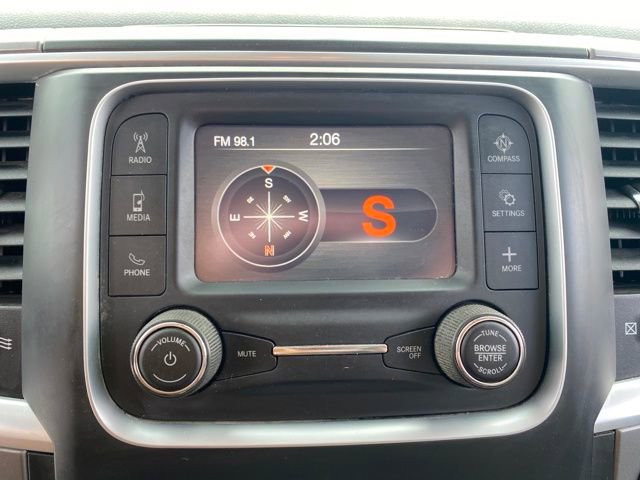 17 x 7 Aluminum Wheels, 3.21 Rear Axle Ratio, 4-Wheel Disc Brakes, 40/20/40 Split Bench Seat, 6 Speakers, ABS brakes, Active Grille Shutters, Air Conditioning, Alloy wheels, AM/FM radio: SiriusXM, Anti-Spin Differential Rear Axle, Audio Input Jack for Mobile Devices, Black Exterior Mirrors, Brake assist, Bumpers: chrome, Center Hub, Class IV Receiver Hitch, Cloth 40/20/40 Bench Seat, Compass, Delay-off headlights, Driver door bin, Dual front impact airbags, Dual front side impact airbags, Electronic Shift, Electronic Stability Control, Exterior Mirrors w/Heating Element, Front anti-roll bar, Front Armrest w/3 Cupholders, Front Center Armrest w/Storage, Front reading lights, Front wheel independent suspension, Fully automatic headlights, GPS Antenna Input, Heated door mirrors, Illuminated entry, Integrated Voice Command w/Bluetooth, Low tire pressure warning, Occupant sensing airbag, Outside temperature display, Overhead airbag, Overhead console, Panic alarm, ParkView Rear Back-Up Camera, Passenger door bin, Passenger vanity mirror, Power door mirrors, Power steering, Power windows, Protection Group, Radio data system, Radio: Uconnect 3 w/5 Display, Rear anti-roll bar, Rear seat center armrest, Rear step bumper, Remote keyless entry, Remote USB Port, Remote USB Port - Charge Only, Rotary Shifter-Black, Speed control, Storage Tray, Tachometer, Tilt steering wheel, Tip Start, Tow Hooks, Traction control, Trailer Brake Control, Trip computer, Variably intermittent wipers, Voltmeter.