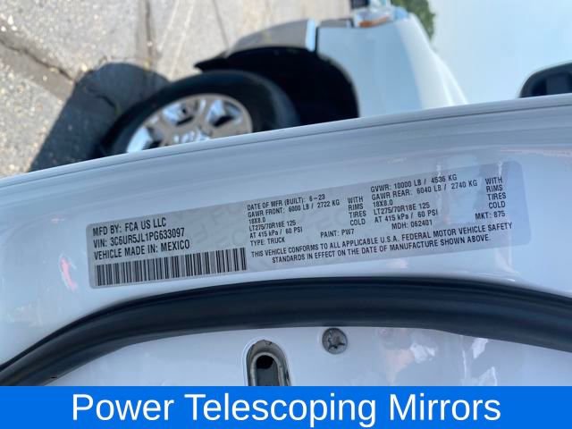 2nd Row In Floor Storage Bins, 4G LTE Wi-Fi Hot Spot, 8.4 Touchscreen Display, Apple CarPlay, Auto Power-Folding Mirrors, Big Horn IP Badge, Black Exterior Mirrors, Bluetooth Handsfree Phone & Audio, Connectivity - US/Canada, Dual Glove Boxes, Exterior Mirrors Courtesy Lamps, Exterior Mirrors w/Heating Element, Exterior Mirrors w/Supplemental Signals, Foam Bottle Insert (Door Trim Panel), Footwell Courtesy Lamp, For Details, Visit DriveUconnect.com, For More Info, Call 800-643-2112, Forward & Reverse Utility Lights, Front Fog Lamps, Global Telematics Box Module (TBM), Glove Box Lamp, Google Android Auto, GPS Antenna Input, Integrated Center Stack Radio, Integrated Voice Command w/Bluetooth, Leather Wrapped Steering Wheel, Level 1 Equipment Group, Locking Lower Glove Box, Mirror Running Lights, ParkView Rear Back-Up Camera, Power Adjust Mirrors, Power Adjustable Convex Aux Mirrors, Power Heated Fold Telescope Mirrors, Power Telescoping Mirrors, Premium Cloth 40/20/40 Bench Seat, Quick Order Package 2HZ Big Horn, Radio: Uconnect 5 W w/8.4 Display, Rear Dome w/On/Off Switch Lamp, Selectable Tire Fill Alert, SiriusXM Radio Service, SiriusXM Satellite Radio, Speed control, Steering Wheel Mounted Audio Controls, 2 Way Rear Headrest Seat, 3.73 Axle Ratio, 4 Way Front Headrests, 4-Wheel Disc Brakes, 40/20/40 Split Bench Seat, 6 Speakers, ABS brakes, Active Noise Control System, Air Conditioning, Alloy wheels, Auto-dimming Rear-View mirror, Brake assist, Bumpers: chrome, Center Hub, Center Stack Storage Drawer, Chrome Flat Cab-Length Side Steps, Cloth 40/20/40 Bench Seat, Compass, Delay-off headlights, Driver door bin, Dual front impact airbags, Dual front side impact airbags, Electronic Stability Control, Electronically Controlled Throttle, Emergency communication system: SiriusXM Guardian, Front anti-roll bar, Front Armrest w/Cupholders, Front Center Armrest w/Storage, Front Center Seat Cushion Storage, Front License Plate Bracket, Front reading lights, Front Seat Back Map Pockets, Fully automatic headlights, Heated door mirrors, Illuminated entry, Low tire pressure warning, Manual Adjust 4-Way Driver Seat, Manual Adjust 4-Way Front Passenger Seat, Manufacturer's Statement of Origin, Occupant sensing airbag, Outside temperature display, Overhead airbag, Overhead console, Panic alarm, Passenger door bin, Passenger vanity mirror, Power 2-Way Driver Lumbar Adjust, Power Adjust 8-Way Driver Seat, Power door mirrors, Power steering, Power windows, Radio data system, Radio: Uconnect 3 w/5 Display, Rear 60/40 Folding Seat, Rear anti-roll bar, Rear Folding Seat, Rear seat center armrest, Rear step bumper, Remote keyless entry, Storage Tray, Tachometer, Tilt steering wheel, Tip Start, Tow Hooks, Traction control, Trip computer, Turn signal indicator mirrors, Variably intermittent wipers, Voltmeter, Wheels: 18 x 8.0 Polished Aluminum, One Owner Clean Carfax, 6.7L CUMMINS TURBO DIESEL ENGINE, 2nd Row In Floor Storage Bins, 4G LTE Wi-Fi Hot Spot, 8.4 Touchscreen Display, Apple CarPlay, Auto Power-Folding Mirrors, Big Horn IP Badge, Black Exterior Mirrors, Bluetooth Handsfree Phone & Audio, Connectivity - US/Canada, Dual Glove Boxes, Exterior