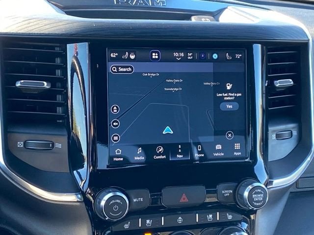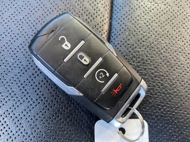 Navigation System, 10 Speakers, 3 Rear Seat Head Restraints, 3.21 Rear Axle Ratio, 4 Way Front Headrests, 4-Wheel Disc Brakes, 48V Belt Starter Generator, 4G LTE Wi-Fi Hot Spot, ABS brakes, Air Conditioning, Alloy wheels, AM/FM radio: SiriusXM with 360L, Apple CarPlay, Apple CarPlay/Android Auto, Audio memory, Auto-dimming door mirrors, Auto-Dimming Exterior Driver Mirror, Auto-dimming Rear-View mirror, Automatic temperature control, Brake assist, Bumpers: chrome, Chrome Exterior Mirrors, Compass, Connected Travel & Traffic Services, Connectivity - US/Canada, Convex Wide-Angle Exterior Mirror Insert, Delay-off headlights, Driver door bin, Driver Seat Memory, Driver vanity mirror, Dual front impact airbags, Dual front side impact airbags, Electronic Stability Control, Exterior Mirrors Courtesy Lamps, Exterior Mirrors w/Heating Element, Exterior Mirrors w/Memory, Exterior Mirrors w/Supplemental Signals, For Details, Visit DriveUconnect.com, For More Info, Call 800-643-2112, Front anti-roll bar, Front Center Armrest w/Storage, Front dual zone A/C, Front fog lights, Front License Plate Bracket, Front reading lights, Front Seat Back Map Pockets, Front wheel independent suspension, Fully automatic headlights, Garage door transmitter, Global Telematics Box Module (TBM), Google Android Auto, GPS Navigation, HD Radio, Heated door mirrors, Heated Front Seats, Heated front seats, Heated Steering Wheel, Heated steering wheel, Illuminated entry, Integrated Voice Command w/Bluetooth, Leather steering wheel, Leather Trim 40/20/40 Bench Seat, Low tire pressure warning, Manufacturer's Statement of Origin, Memory seat, Occupant sensing airbag, Outside temperature display, Overhead airbag, Overhead console, Panic alarm, ParkView Rear Back-Up Camera, Passenger door bin, Passenger vanity mirror, Power 2-Way Driver Lumbar Adjust, Power 2-Way Passenger Lumbar Adjust, Power 8-Way Driver & Passenger Seats, Power door mirrors, Power driver seat, Power passenger seat, Power steering, Power windows, Power-Folding Mirrors, Quick Order Package 27H Laramie, Radio data system, Radio: Uconnect 5 Nav w/8.4 Display, RAM Grille Badge - Chrome, Rear 60/40 Folding Seat, Rear anti-roll bar, Rear seat center armrest, Rear step bumper, Remote keyless entry, Security system, SiriusXM Radio Service, SiriusXM w/360L, Speed control, Split folding rear seat, Steering wheel mounted audio controls, Tachometer, Telescoping steering wheel, Tilt steering wheel, Traction control, Trip computer, Turn signal indicator mirrors, USB Host Flip, Variably intermittent wipers, Ventilated Front Seats, Ventilated front seats, Voltmeter, Wheels: 18 x 8 Aluminum Base Painted, Navigation System.