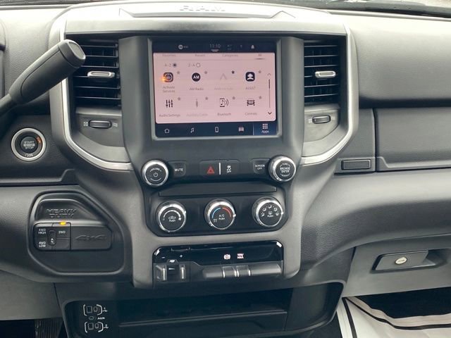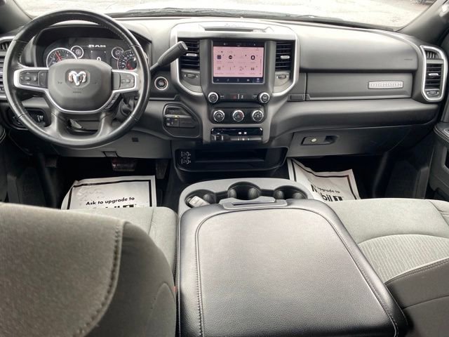 2 Way Rear Headrest Seat, 2nd Row In Floor Storage Bins, 3.73 Axle Ratio, 4 Way Front Headrests, 4-Wheel Disc Brakes, 40/20/40 Split Bench Seat, 4G LTE Wi-Fi Hot Spot, 6 Speakers, 8.4 Touchscreen Display, ABS brakes, Active Noise Control System, Air Conditioning, Apple CarPlay, Auto Power-Folding Mirrors, Big Horn IP Badge, Black Exterior Mirrors, Bluetooth Handsfree Phone & Audio, Brake assist, Bumpers: chrome, Center Hub, Center Stack Storage Drawer, Chrome Flat Cab-Length Side Steps, Cloth 40/20/40 Bench Seat, Compass, Connectivity - US/Canada, Delay-off headlights, Driver door bin, Dual front impact airbags, Dual front side impact airbags, Dual Glove Boxes, Electronic Stability Control, Electronically Controlled Throttle, Emergency communication system: SiriusXM Guardian, Exterior Mirrors Courtesy Lamps, Exterior Mirrors w/Heating Element, Exterior Mirrors w/Supplemental Signals, Foam Bottle Insert (Door Trim Panel), Footwell Courtesy Lamp, For Details, Visit DriveUconnect.com, For More Info, Call 800-643-2112, Forward & Reverse Utility Lights, Front anti-roll bar, Front Armrest w/Cupholders, Front Center Armrest w/Storage, Front Center Seat Cushion Storage, Front Fog Lamps, Front License Plate Bracket, Front reading lights, Front Seat Back Map Pockets, Fully automatic headlights, Global Telematics Box Module (TBM), Glove Box Lamp, Google Android Auto, GPS Antenna Input, Heated door mirrors, Illuminated entry, Integrated Center Stack Radio, Integrated Voice Command w/Bluetooth, Leather Wrapped Steering Wheel, Level 1 Equipment Group, Locking Lower Glove Box, Low tire pressure warning, Manual Adjust 4-Way Driver Seat, Manual Adjust 4-Way Front Passenger Seat, Manufacturer's Statement of Origin, Mirror Running Lights, Occupant sensing airbag, Outside temperature display, Overhead airbag, Overhead console, Panic alarm, ParkView Rear Back-Up Camera, Passenger door bin, Passenger vanity mirror, Power 2-Way Driver Lumbar Adjust, Power Adjust 8-Way Driver Seat, Power Adjust Mirrors, Power Adjustable Convex Aux Mirrors, Power door mirrors, Power Heated Fold Telescope Mirrors, Power steering, Power Telescoping Mirrors, Power windows, Premium Cloth 40/20/40 Bench Seat (DISC), Quick Order Package 2HZ Big Horn, Radio data system, Radio: Uconnect 3 w/5 Display, Radio: Uconnect 5 W w/8.4 Display, Rear 60/40 Folding Seat, Rear anti-roll bar, Rear Dome w/On/Off Switch Lamp, Rear Folding Seat, Rear seat center armrest, Rear step bumper, Remote keyless entry, Remote USB Port - Charge Only, Selectable Tire Fill Alert, SiriusXM Radio Service, SiriusXM Satellite Radio, Speed control, Steering Wheel Mounted Audio Controls, Storage Tray, Tachometer, Tilt steering wheel, Tip Start, Tow Hooks, Traction control, Trip computer, Turn signal indicator mirrors, Variably intermittent wipers, Voltmeter, Wheels: 18 x 8.0 Polished Aluminum, Wheels: 18 x 8.0 Steel Chrome Clad.