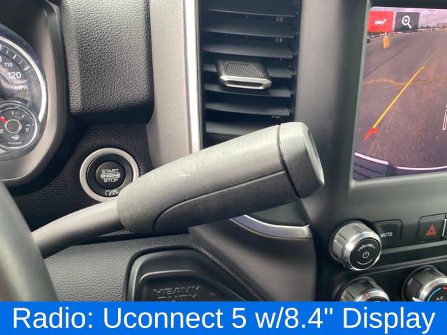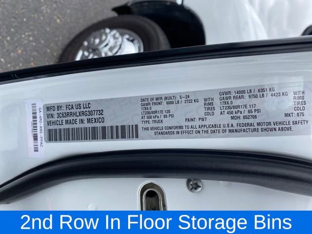 2nd Row In Floor Storage Bins, Apple CarPlay, Auto Power-Folding Mirrors, Black Exterior Mirrors, Center Hub, Dual Glove Boxes, Exterior Mirrors Courtesy Lamps, Exterior Mirrors w/Heating Element, Exterior Mirrors w/Supplemental Signals, Foam Bottle Insert (Door Trim Panel), Footwell Courtesy Lamp, Forward & Reverse Utility Lights, Front Fog Lamps, Glove Box Lamp, Leather Wrapped Steering Wheel, Level 1 Equipment Group, Locking Lower Glove Box, Mirror Running Lights, Power Adjust Mirrors, Power Heated Fold Telescopic Mirrors, Power Telescoping Mirrors, Power-Adjustable Convex Aux Mirrors, Premium Cloth 40/20/40 Bench Seat, Quick Order Package 2HZ Big Horn, Radio: Uconnect 5 w/8.4 Display, Rear Dome w/On/Off Switch Lamp, Steering Wheel Mounted Audio Controls, Wheels: 18 x 8.0 Polished Aluminum, 2 Way Rear Headrest Seat, 3.73 Axle Ratio, 4 Way Front Headrests, 4-Wheel Disc Brakes, 40/20/40 Split Bench Seat, 4G LTE Wi-Fi Hot Spot, 5th Wheel/Gooseneck Towing Prep Group, 6 Speakers, 6000# Front Axle w/Hub Ext, 8.4 Touchscreen Display, ABS brakes, Active Noise Control System, Air Conditioning, All R1 Low Radios, All Radio Equipped Vehicles, Bluetooth Handsfree Phone & Audio, Box & Rear Fender Clearance Lamps, Brake assist, Bumpers: chrome, Chrome Flat Cab-Length Side Steps, Clearance Lamps, Cloth 40/20/40 Bench Seat, Compass, Connectivity - US/Canada, Delay-off headlights, Driver door bin, Dual front impact airbags, Dual front side impact airbags, Dual Rear Wheels, Electronic Stability Control, Electronically Controlled Throttle, Emergency communication system: SiriusXM Guardian, For Details Visit DriveUconnect.com, For More Info, Call 800-643-2112, Front anti-roll bar, Front Armrest w/Cupholders, Front Center Armrest w/Storage, Front Center Seat Cushion Storage, Front License Plate Bracket, Front reading lights, Front Seat Back Map Pockets, Fully automatic headlights, Global Telematics Box Module (TBM), Google Android Auto, GPS Antenna Input, Heated door mirrors, Illuminated entry, Integrated Center Stack Radio, Integrated Voice Command w/Bluetooth, LED Tail Lamps, Low tire pressure warning, Manual Adjust 4-Way Driver Seat, Manual Adjust 4-Way Front Passenger Seat, Manufacturer's Statement of Origin, MOPAR Spray In Bedliner, Occupant sensing airbag, Outside temperature display, Overhead airbag, Overhead console, Panic alarm, ParkView Rear Back-Up Camera, Passenger door bin, Passenger vanity mirror, Power Adjust 8-Way Driver Seat, Power door mirrors, Power steering, Power windows, Radio data system, Radio: Uconnect 3 w/5 Display, Radio: Uconnect 5 w/8.4 Display (DISC), Rear 60/40 Folding Seat, Rear Folding Seat, Rear seat center armrest, Rear step bumper, Rear Wheelhouse Liners, Remote keyless entry, Remote USB Port - Charge Only, Selectable Tire Fill Alert, SiriusXM Radio Service, SiriusXM Satellite Radio, Speed control, Storage Tray, Tachometer, Tilt steering wheel, Tip Start, Traction control, Trip computer, Turn signal indicator mirrors, Variably intermittent wipers, Voltmeter, Wheels: 17 x 6.0 Steel Chrome Clad, Wheels: 18 x 8.0 Steel Chrome Clad, DRW, Dual Rear Wheel, 2nd Row In Floor Storage Bins, Apple CarPlay, Auto Power